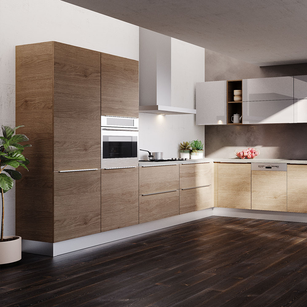Kite can match different styles as it combines gloss lacquer and structured wood.
